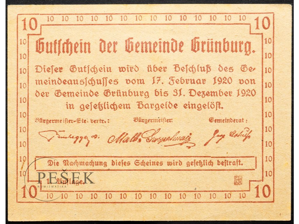 Rakousko, 10 Heller 1920,