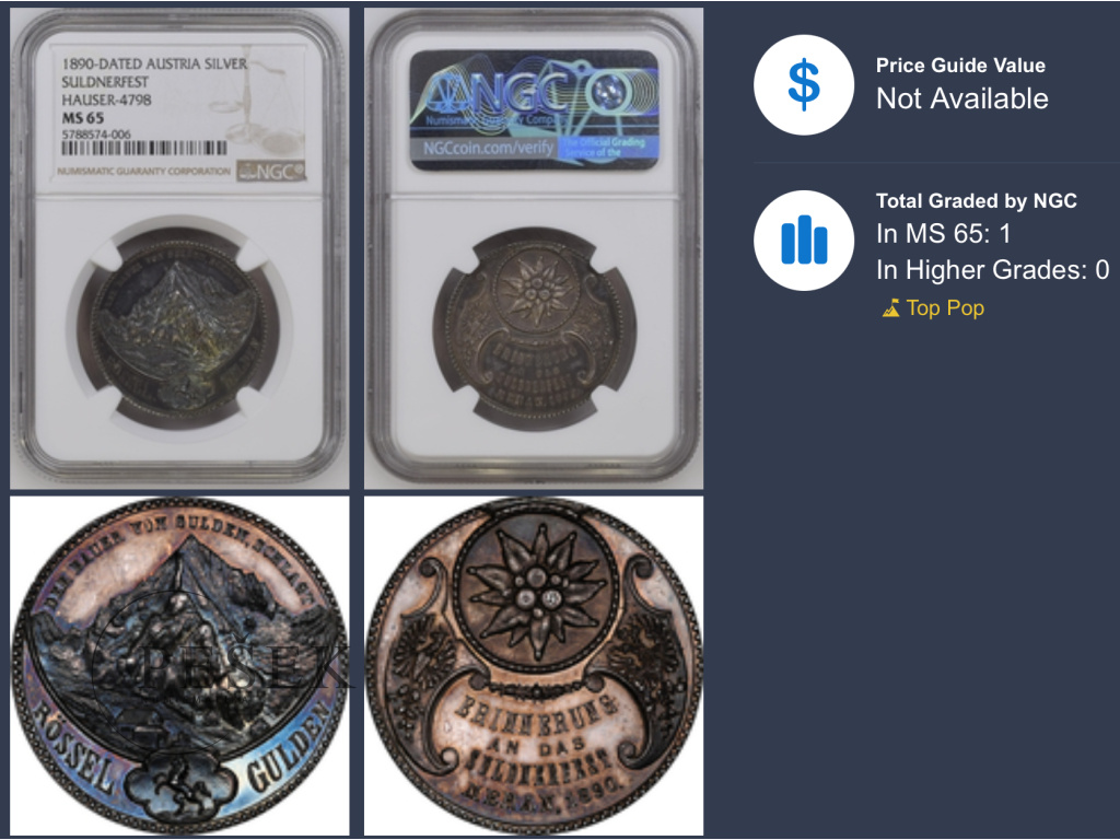 Meránský Zlatník 1890, NGC MS65, TOP POP
